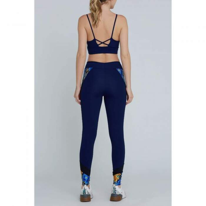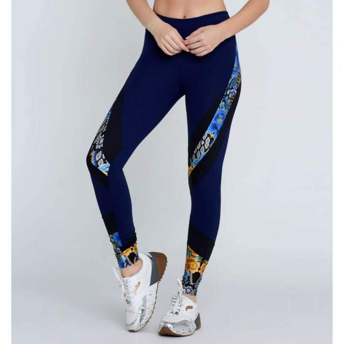 CALZA LEGGINS CON CORTES ESTAMPADOS AZULES NEGRO maismar