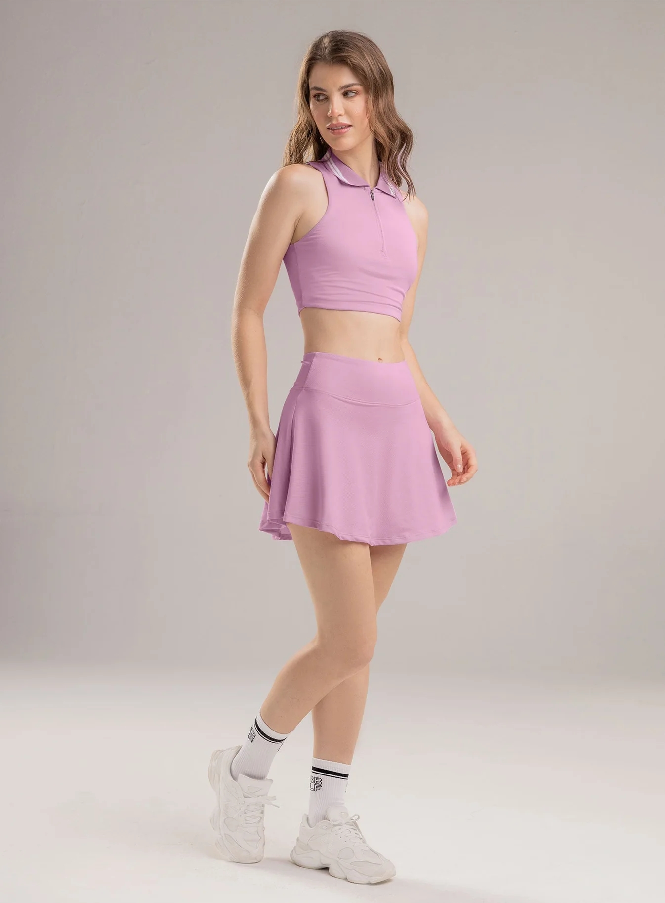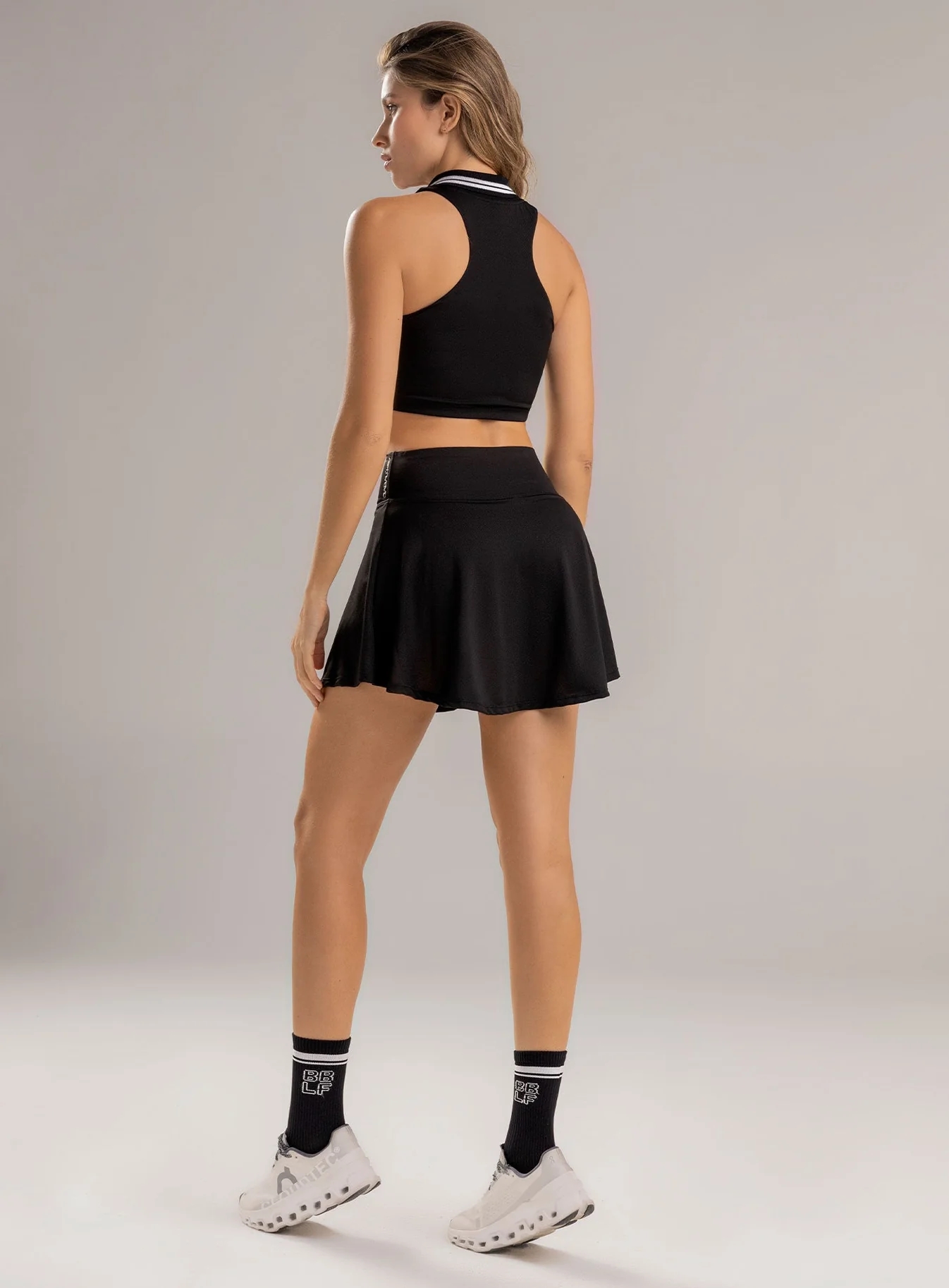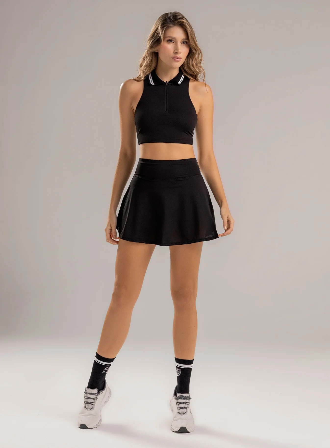 Falda deportiva dama corta con cintura anatómica, pretina alta de compresión media, para deportes como tenis, pádel, golf, running, movilidad ampliada de cadera y piernas, caída fluida desde la cadera hacia abajo, cómoda, ligera y versátil, incluye short interno brindando máxima comodidad y evita la fricción.