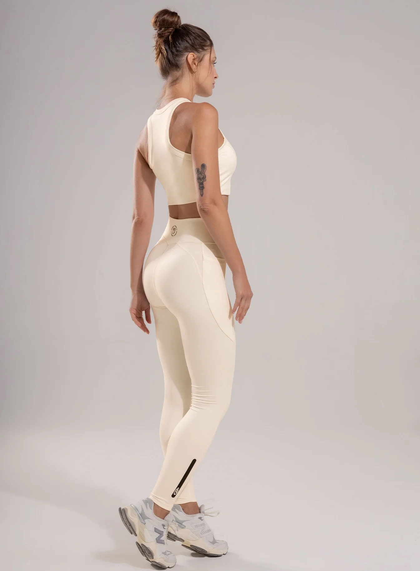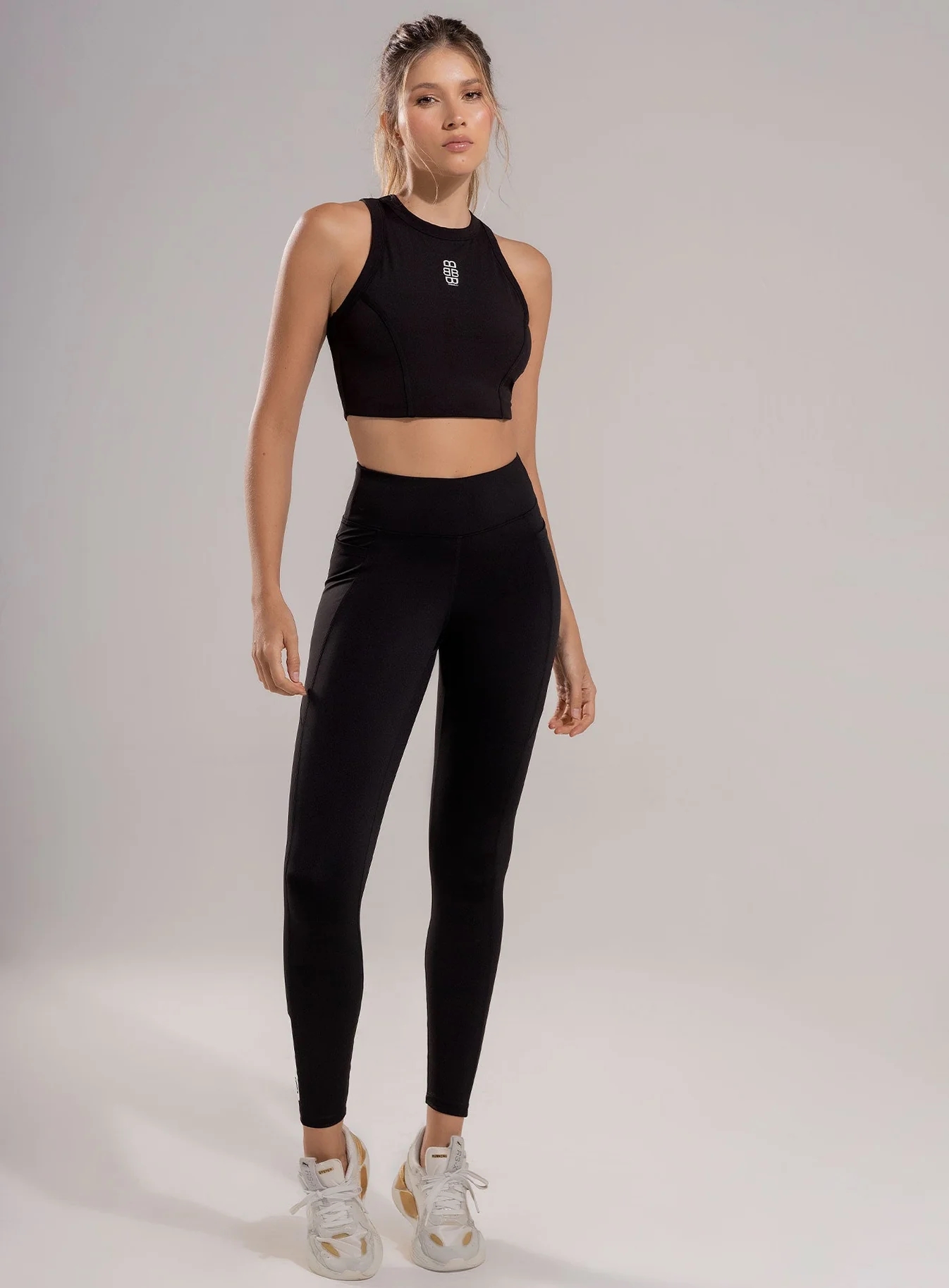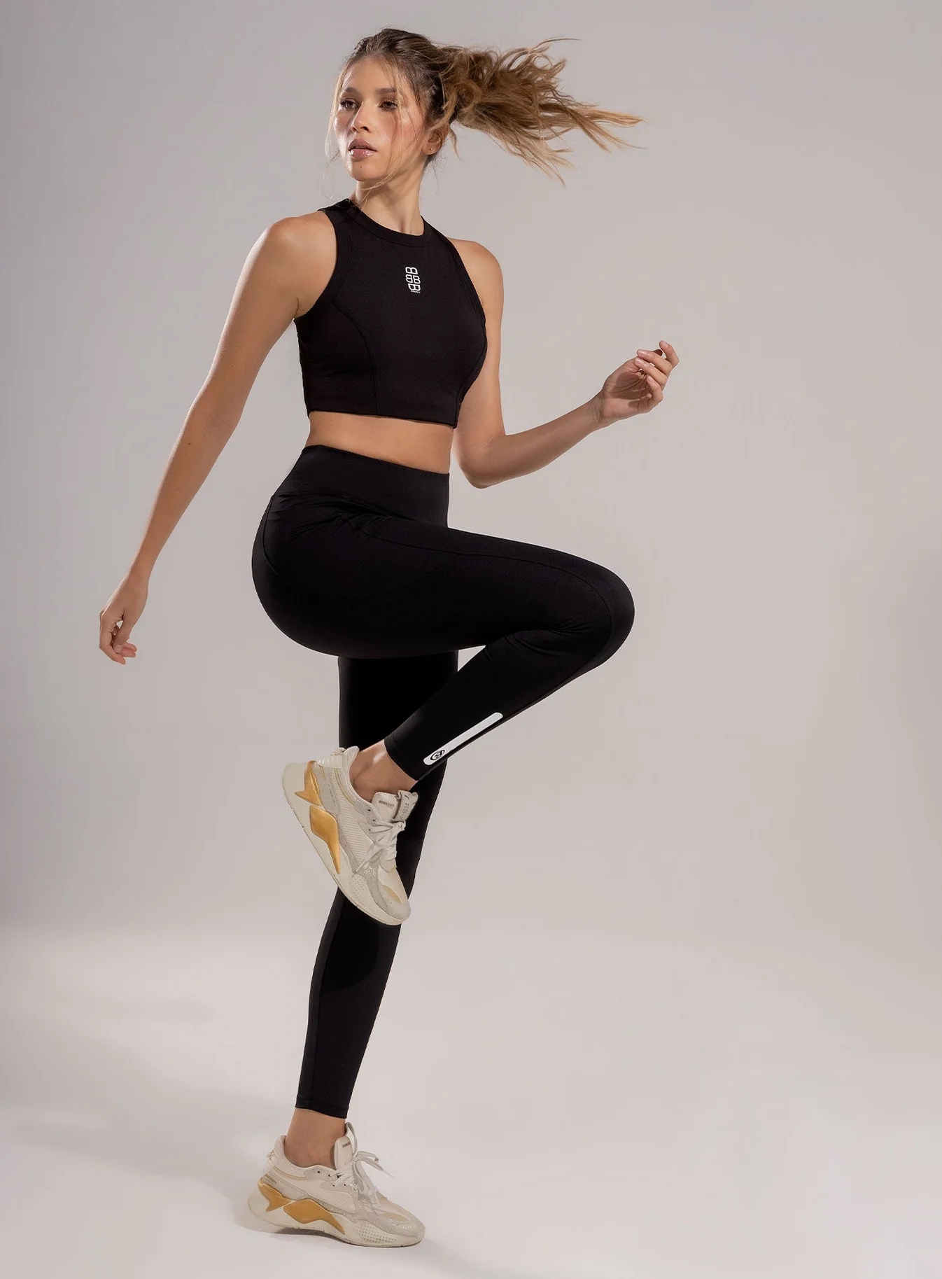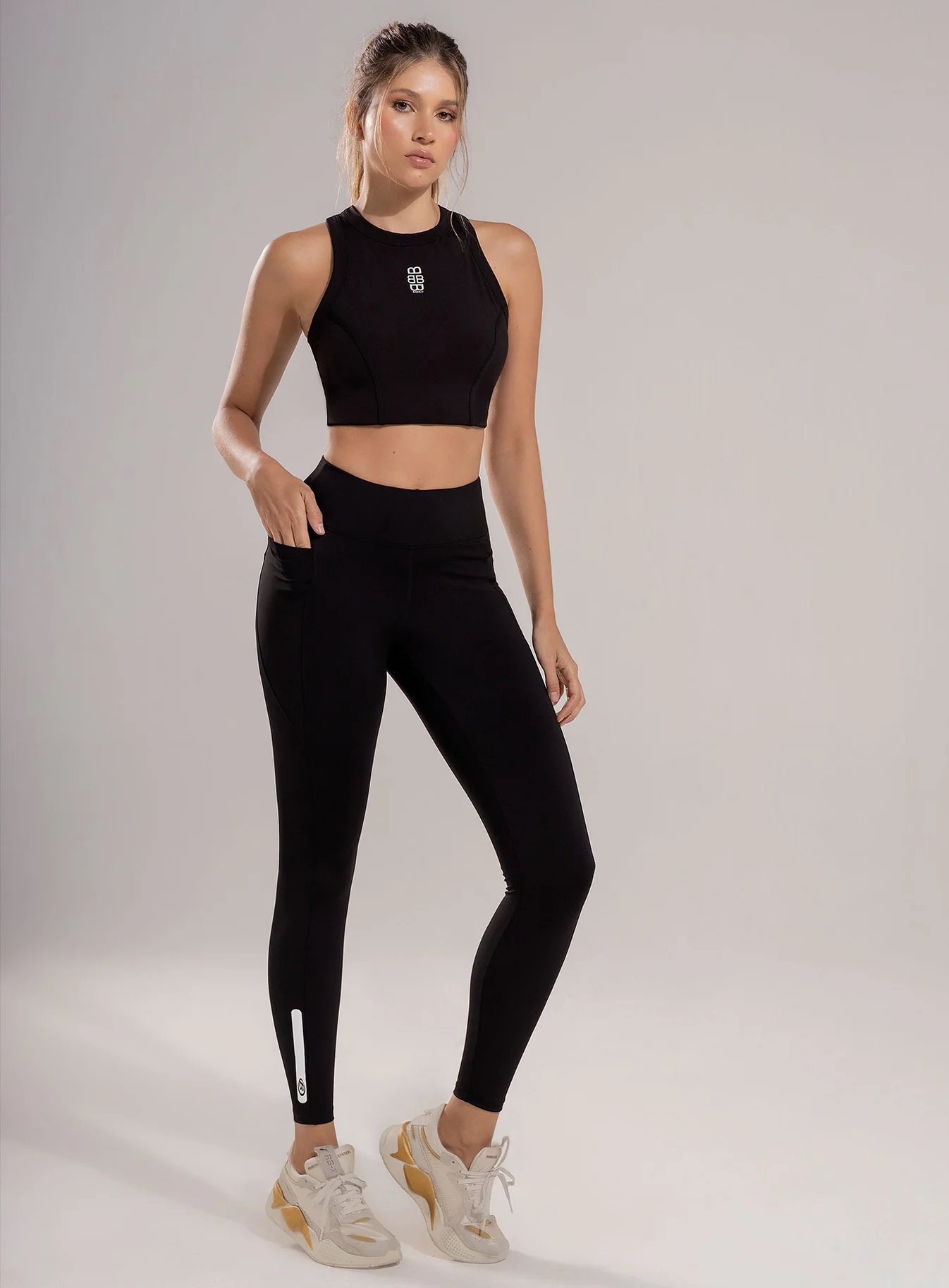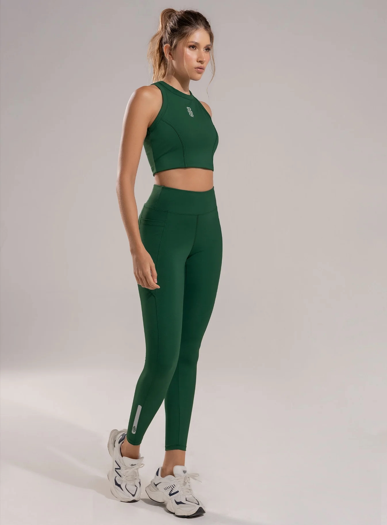 Leggins deportivo dama con pretina en punta para mejor apariencia y alta para mayor compresión, complementado con un refuerzo en triángulo estratégicamente ubicado para evitar marcaciones indeseadas y garantizar máxima discreción y comodidad durante cualquier rutina de entrenamiento de alta intensidad, lo que lo hace ideal para rutinas de ejercicio de alto rendimiento. con bolsillos funcionales en laterales, cortes en costados y posterior.