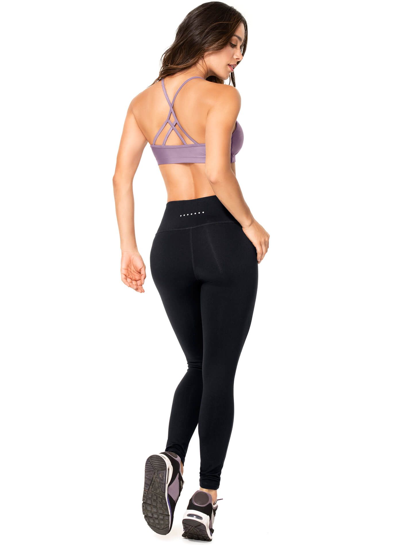 Leggins en fondo entero con silueta ajustada, pretina alta de amplio cubrimiento para mayor soporte en la zona abdominal y un pequeño logo en la cintura que brinda un verdadero estilo deportivo.