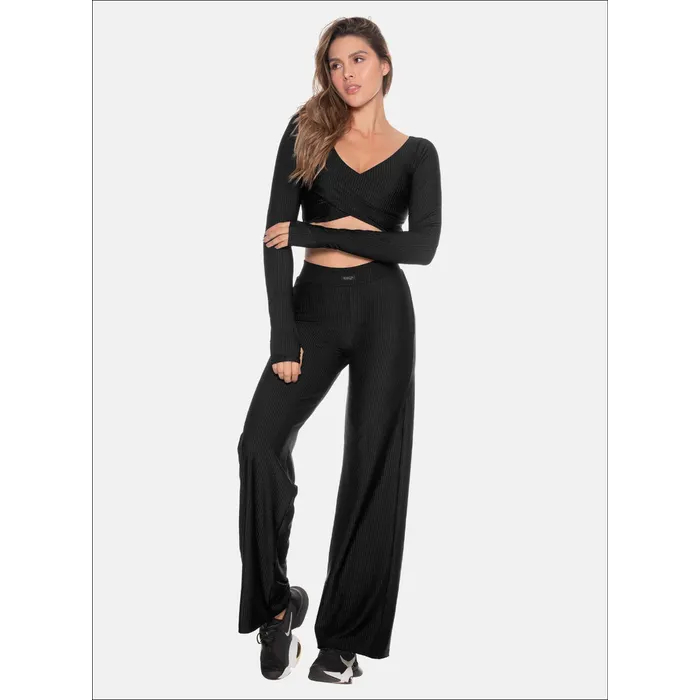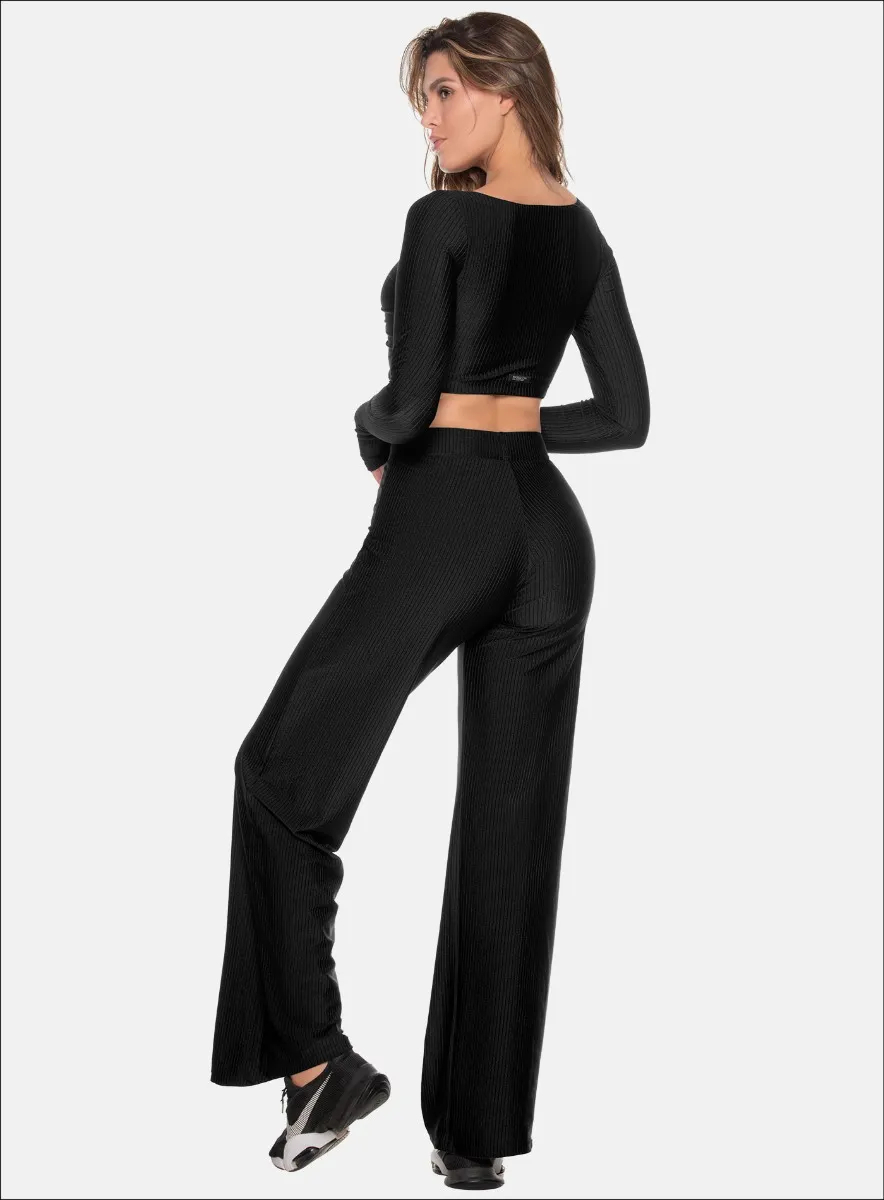 PANTALÓN DEPORTIVO BOTA ANCHA EN TELA ACANALADA CON EFECTO BRILLANTE