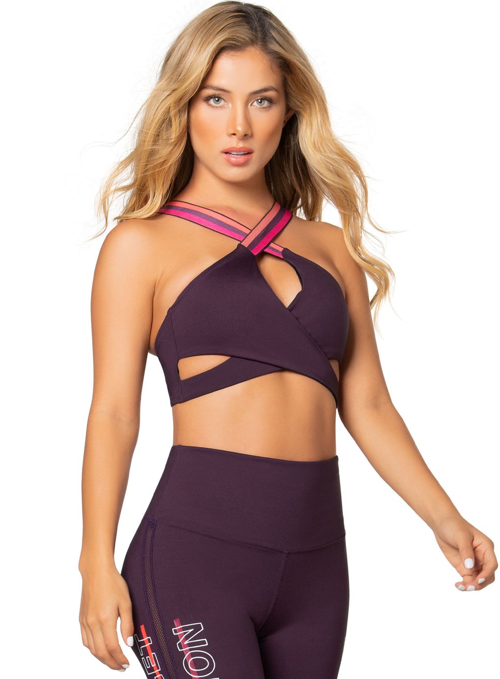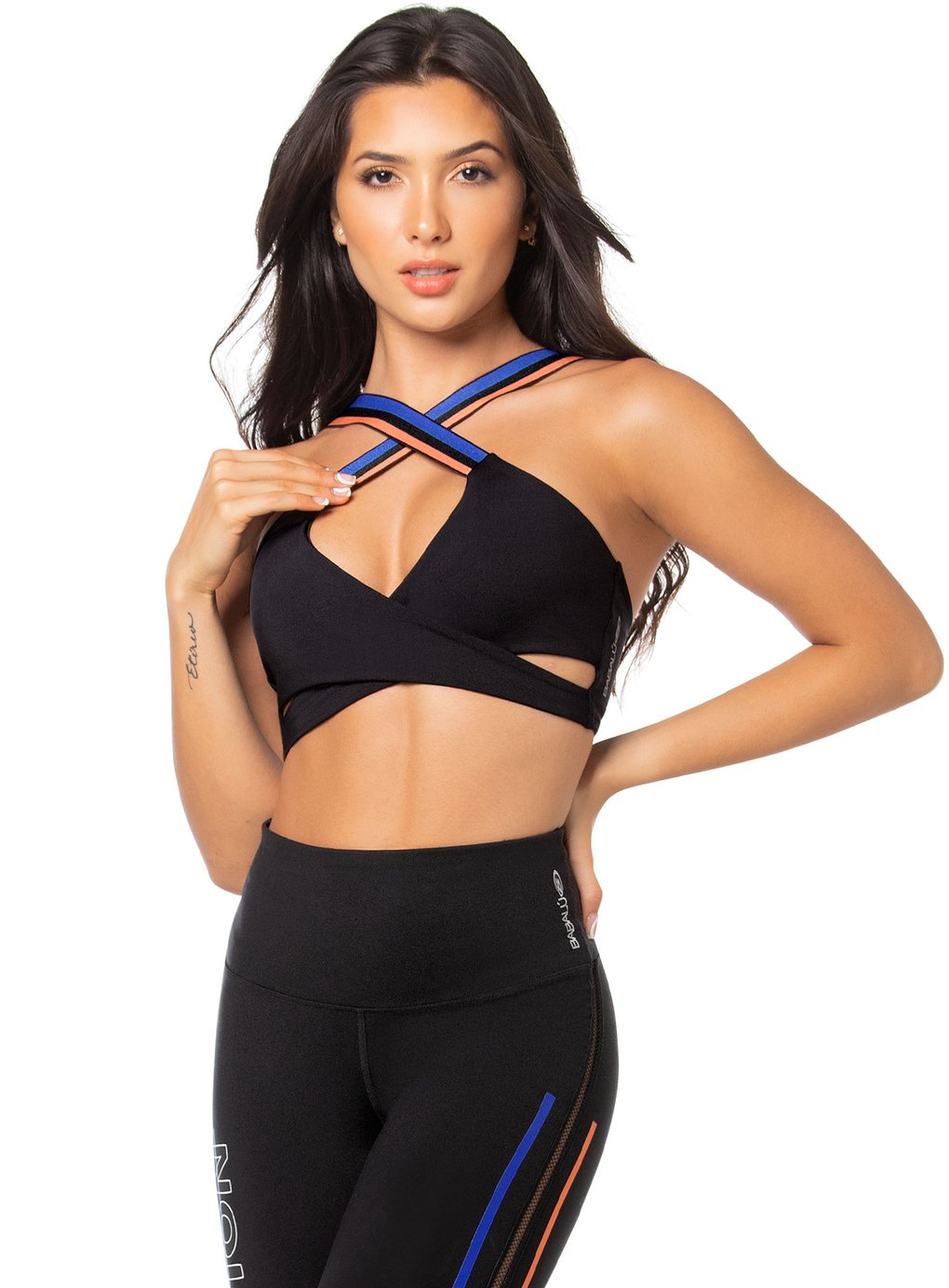 Top con tonos en contraste, elástico en la parte inferior y espalda cruzada con tira graduable y diseño frontal que te dará un estilo único.