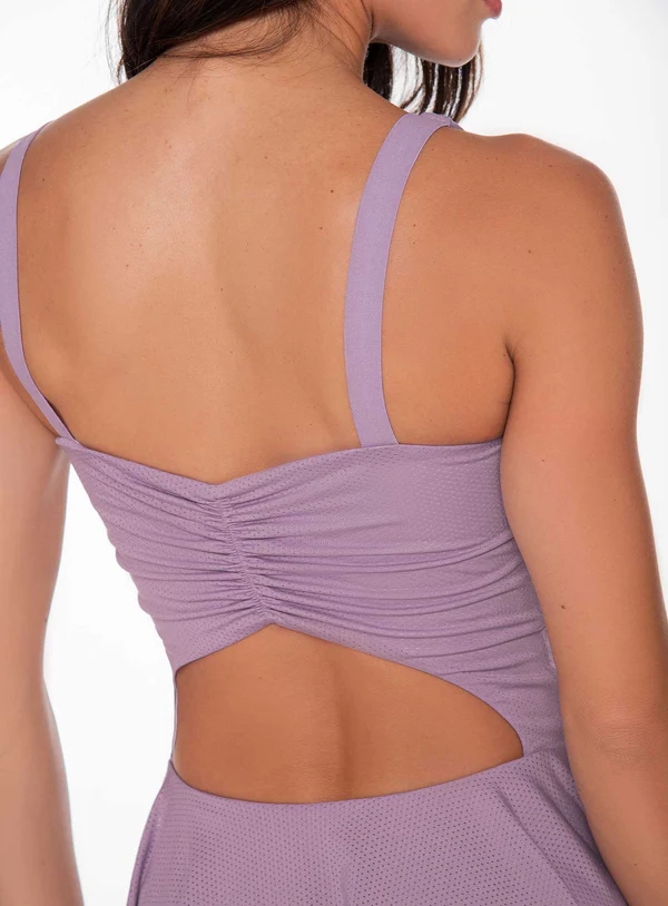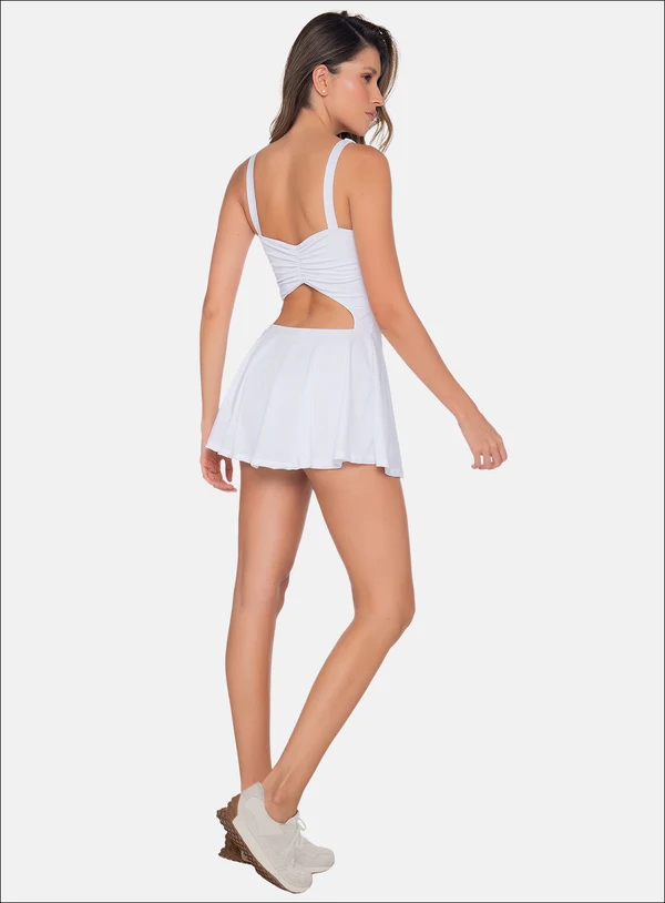 VESTIDO DEPORTIVO CON FORRO INTERNO, CARGADERAS CON RECOGIDO Y CORTE CUT-OUT EN ESPALDA, TIENE SHORT INTERNO CON BOLSILLO LATERAL